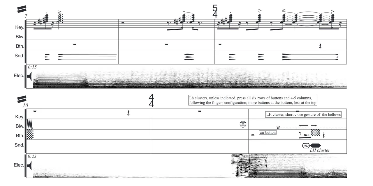 Bellow was completed in Spring 2021 and commissioned by Ensemble Klangforum Wien accordionist Krassimir Sterev. In Bellow, mental images, sound transformation, and Trancontextuality are at the core of the piece. The accordion manifests itself as Leslie train horns with the characteristic chords, cow bellows, kickboxing punches, flapping wings, typing sound on a manual typewriter, and Messiaen’s Livre du Saint Sacrement organ sonorities among others.